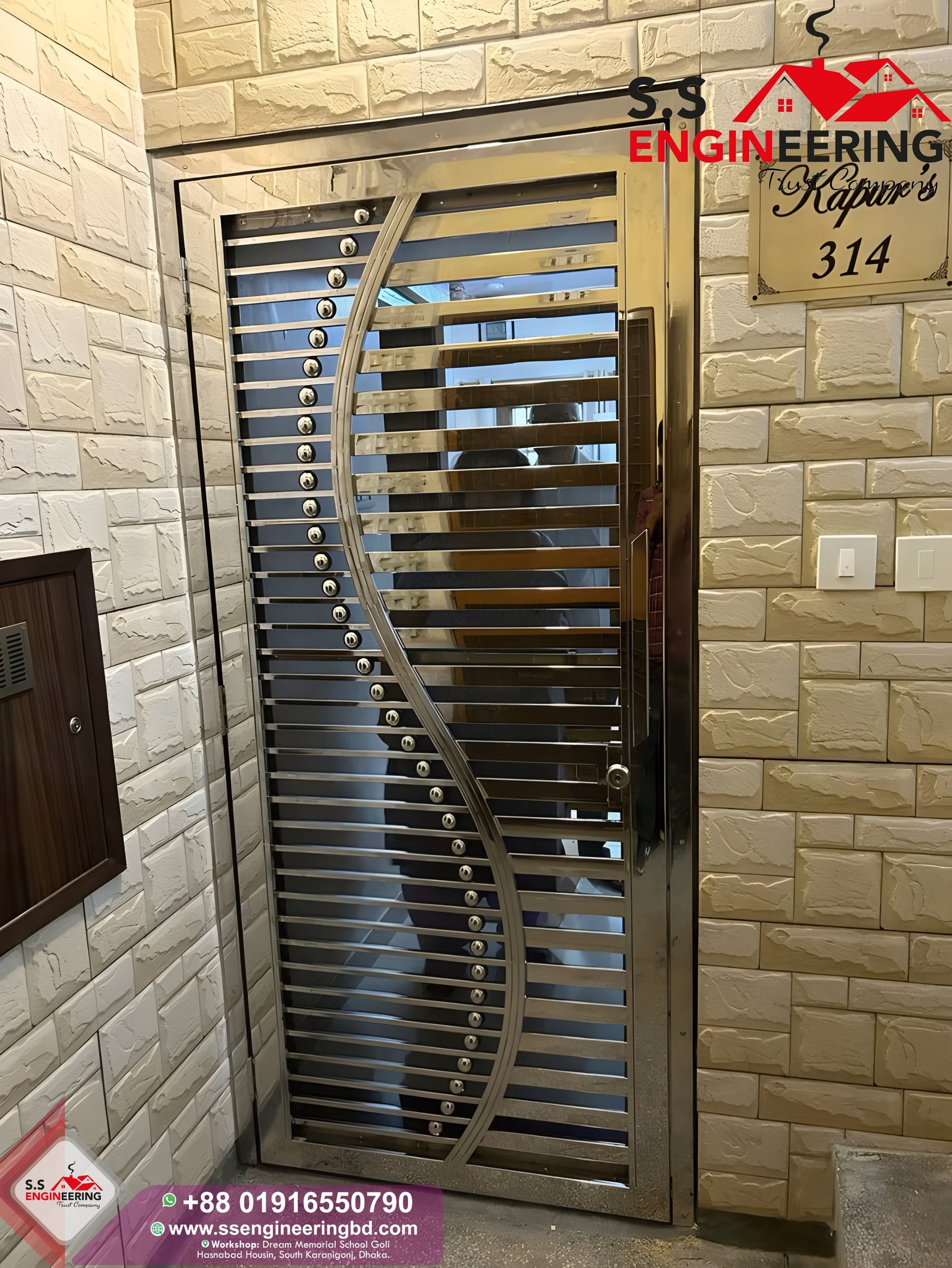 At SS Engineering, we specialize in custom stainless steel main gates crafted from high-quality stainless steel. Each gate is rust-proof, weather-resistant, and low-maintenance, with premium powder coating for long-lasting shine and strength, even in Bangladesh’s diverse climate.